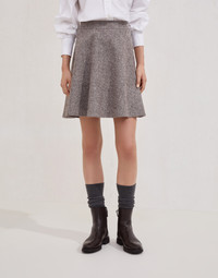 Virgin wool herringbone tweed mini circle skirt