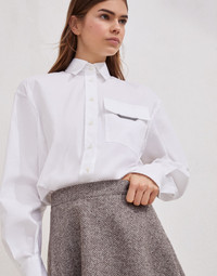 A feminine attitude meets British inspirations in the new virgin wool tweed circle miniskirt. The essential and sophisticated silhouette features slightly flared lines on the bottom, which lend a pleasant touch of movement to the piece. The zipper closure is complemented by an elasticated waistband, for added comfort when worn. MATERIALS The virgin wool tweed is a warm, resistant fabric, characterized by a slightly irregular surface and a substantial hand. Traditionally associated with the style of British menswear, it stands out for its textured appearance and the typical slightly melange chevron design. DETAILS Side zip closure Elastic waistband Lined 73% VIRGIN WOOL, 27% NYLON
