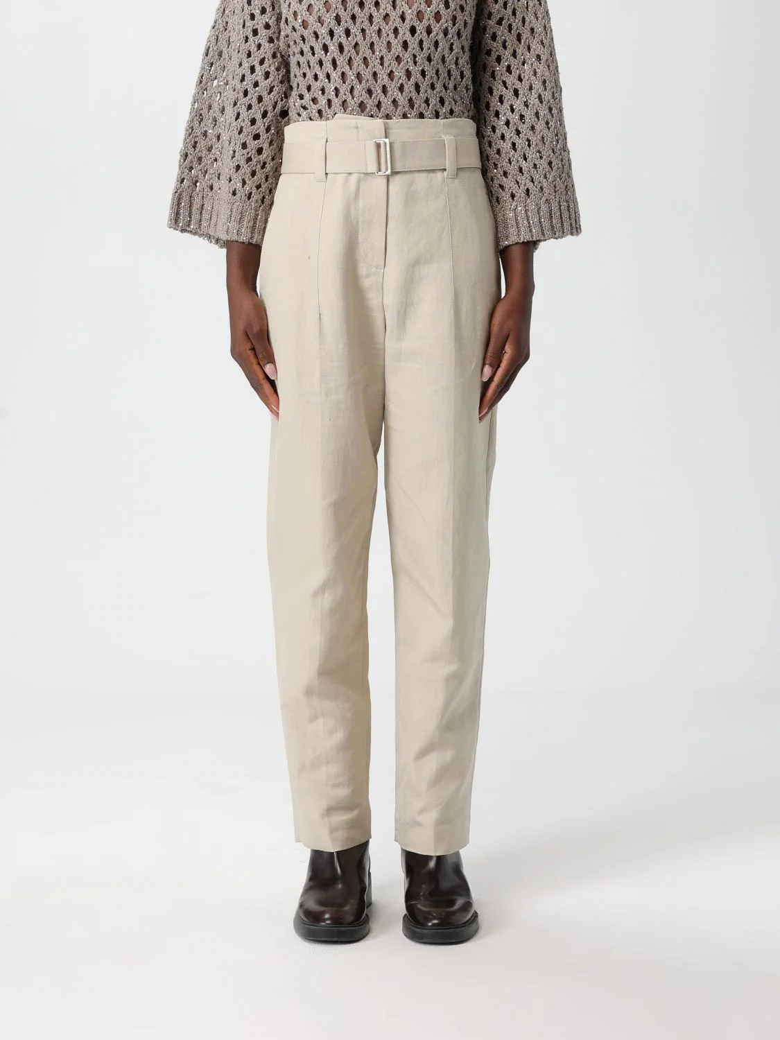 DESCRIPTION - Style: Minimal - Details: With rhinestones - Neckline: Crewneck - Shoulders: Relaxed - Sleeves: Long - Bottom: With ribbed edges, With straight hemline - Model: Pierced - Materials: Linen blend, Silk blend - Pattern: Embroidery, Plain-colored DETAILS AND CARE Composition 36% silk 34% linen 17% polyamide 13% polyeste SIZE AND FIT Sizes not available Size and fit Relaxed fit Designer code: MEA338200P C9545 Giglio Code: H18595 Designer: Brunello Cucinelli Collection: Brunello Cucinelli Woman Category: Clothing Brunello Cucinelli