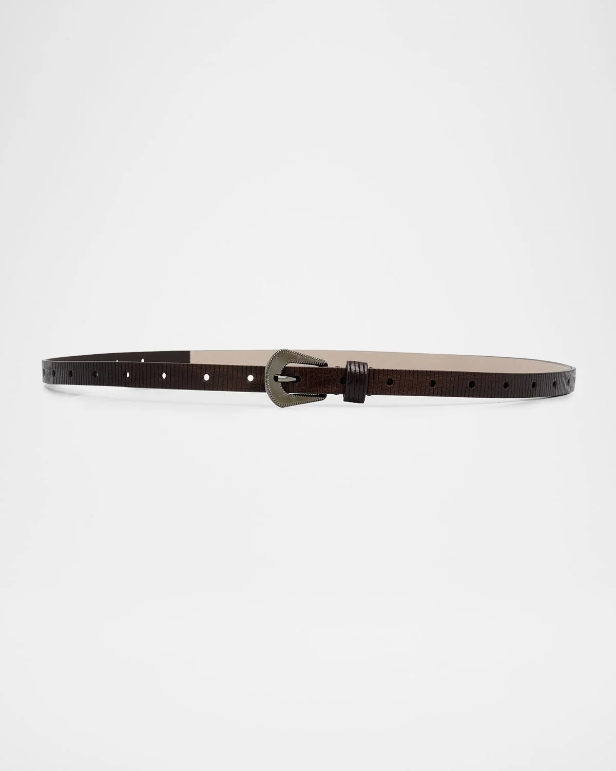 - Brunello Cucinelli belt crafted of lizard-effect carved leather - Silver-tone buckle closure - Approx. 0.39"H - Leather - Made in Italy