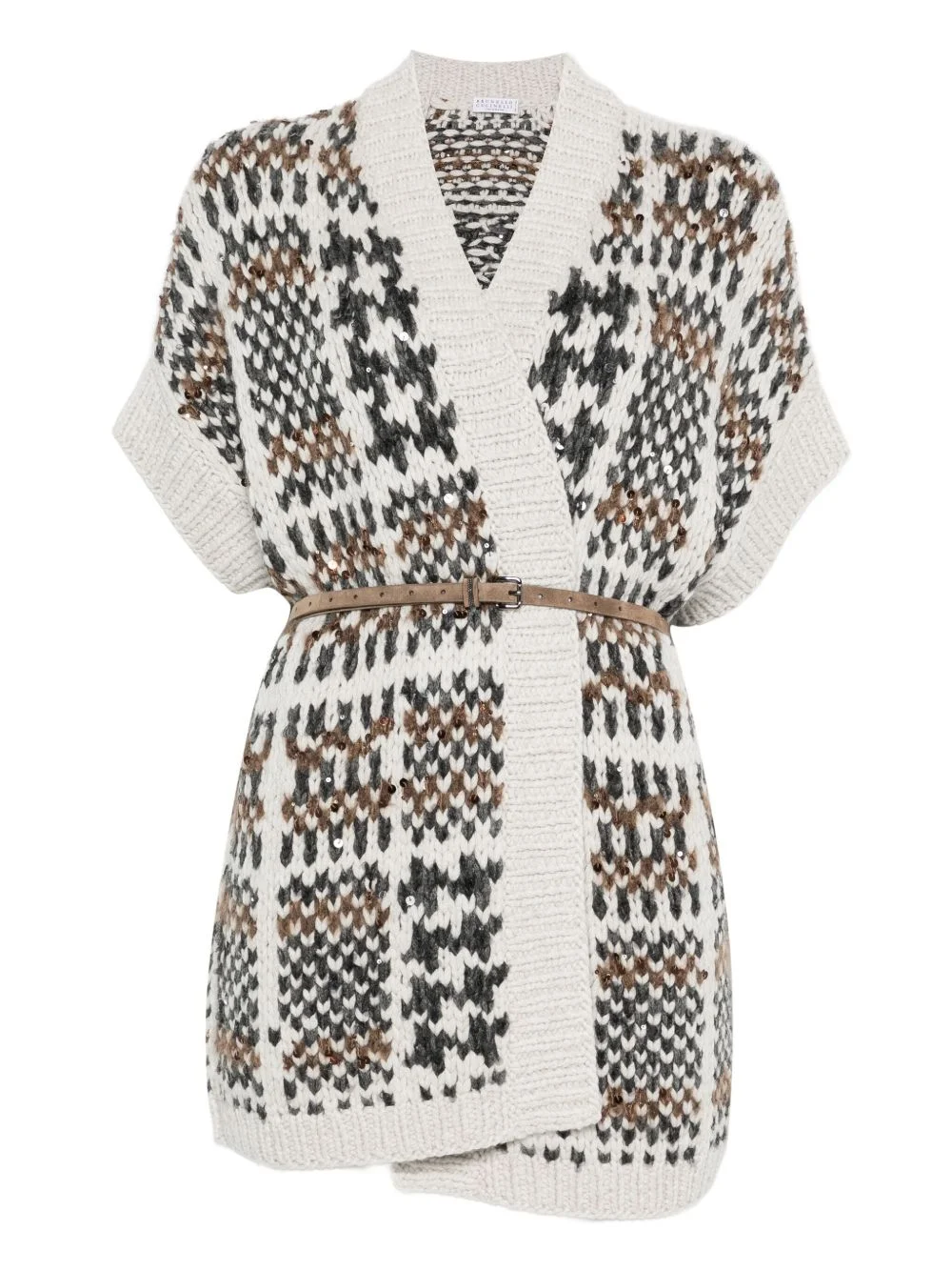 patterned belted cardigan Highlights Made in Italy Composition Fabric 100% SIZE & FIT Model measurements Height 5 ft 10 in(1.79 m) Bust/Chest 33.46 in(85 cm) Hips 34.64 in(88 cm) Waist 23.62 in(60 cm)