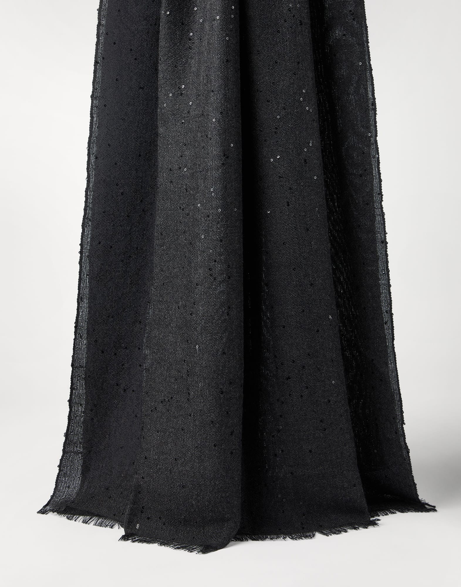 A sophisticated and shimmering look define this new cashmere and silk Diamond yarn scarf. The surface’s shiny reflections provide the accessory with a sparkling note. The fringe edges complete the style of the scarf with a bold touch. MATERIALS Cashmere is combined with silk to obtain an ultra-soft and weightless-effect yarn. DETAILS Scarf measures approx. 80 cm (31.50") x 200 cm (78.74") 70% CASHMERE, 30% SILK