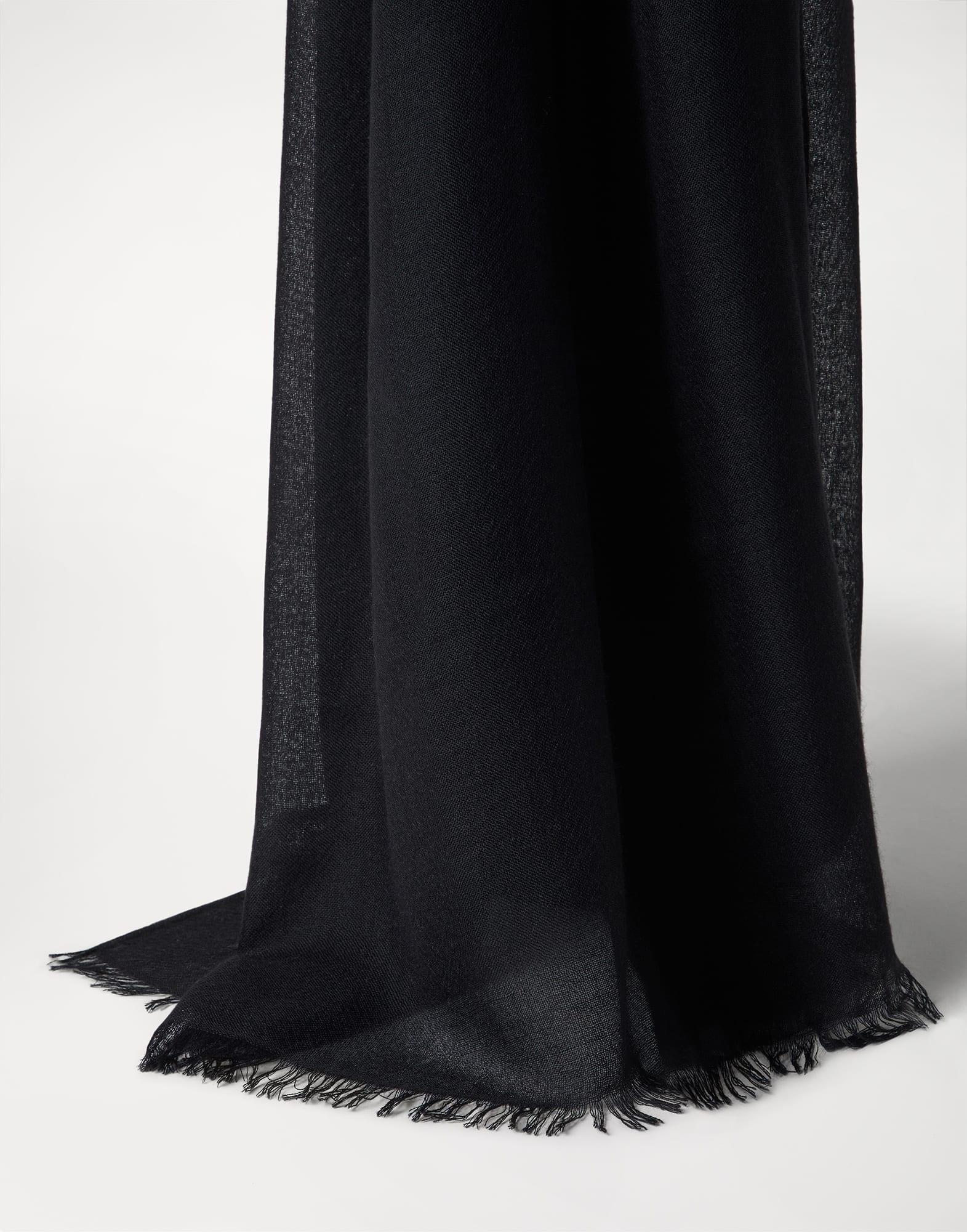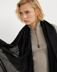 The quality of Brunello Cucinelli materials enhances the style of the scarf with a sophisticated touch. The ulltra-soft, lightweight and slightly transparent effect of the precious cashmere and silk yarn enriches the season’s colors with a delicate effect. MATERIALS Cashmere is combined with silk to obtain an ultra-soft and weightless-effect yarn. DETAILS Scarf measures approx. 100 cm (39.37") x 200 cm (78.74") 95% CASHMERE, 5% SILK