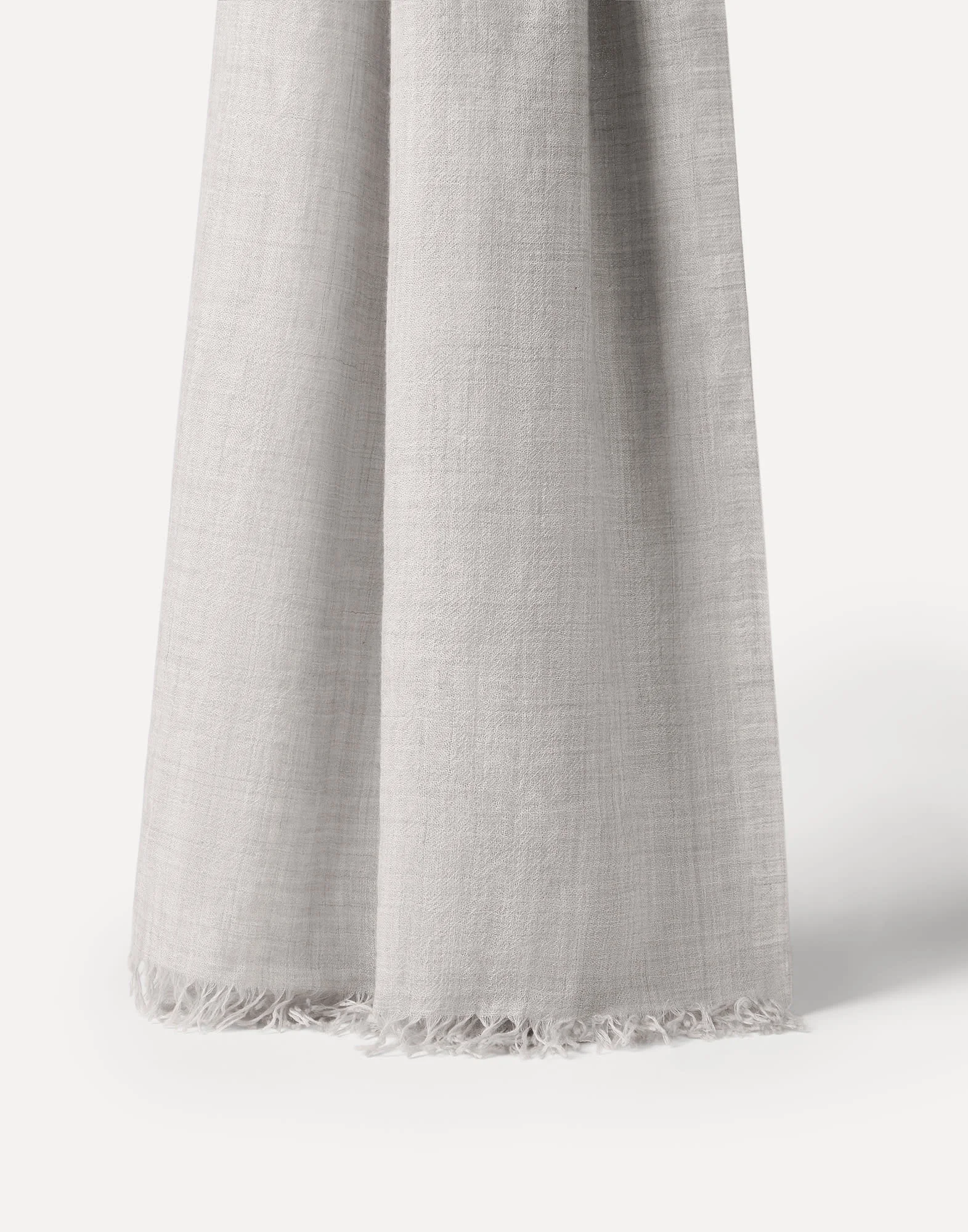 The quality of Brunello Cucinelli materials enhances the style of the scarf with a sophisticated touch. The ulltra-soft, lightweight and slightly transparent effect of the precious cashmere and silk yarn enriches the season’s colors with a delicate effect. MATERIALS Cashmere is combined with silk to obtain an ultra-soft and weightless-effect yarn. DETAILS Scarf measures approx. 100 cm (39.37") x 200 cm (78.74") 95% CASHMERE, 5% SILK
