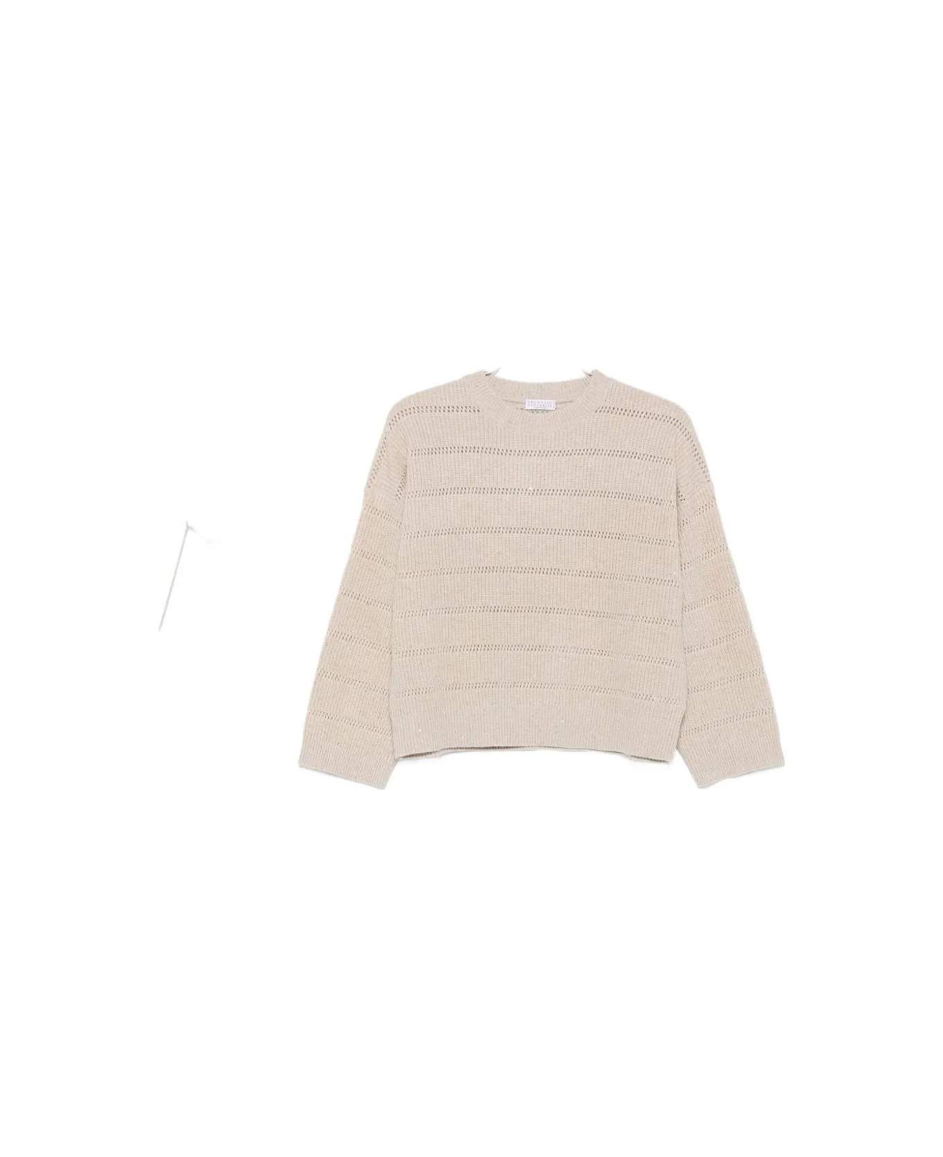 Cenere GB has selected this model for its high stylistic content and its eco-sustainability. Brunello Cucinelli striped open-knit sweater beige open knit striped pattern round neck long sleeves Origin: Italy Composition cashmere 47%, wool 47%, polyester 4%, polyamide 2% Composition: (t160), 47% Cashmere, 47% Wool, 4% Polyester, 2% Pa Color Beige Made in: Italy Color: Beige Model number: MBM738200C505