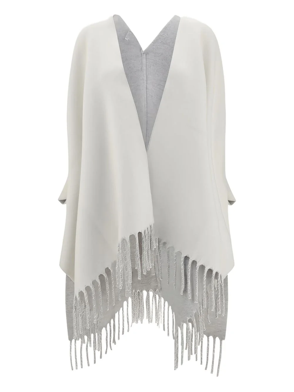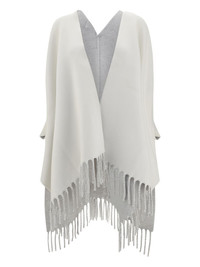 fringed poncho Highlights - White - Wool-cashmere blend - Shawl lapels - Fringed hemline Made in Italy Composition Wool 60%, Cashmere 40%