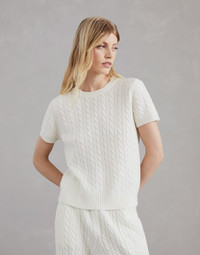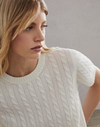 Cashmere cable knit short sleeve sweater