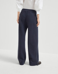 Traditional techniques reinterpret the casual feel of these cable knit cashmere trousers. This piece features slightly close-fitting yet relaxed lines, which perfectly complement the classic inspirations of cable knitting, creating a garment that is both versatile and elegant. The pull-on fit complements the comfort of the garment. MATERIALS The noble cashmere fiber is characterized by its extreme fineness and precious insulating qualities, which simultaneously guarantee warmth, protection and lightness when worn. DETAILS Pull-up trousers Vertical front pockets Cable knit 100% CASHMERE