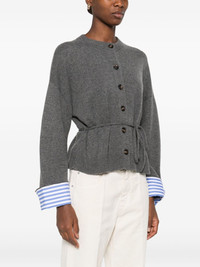 button-fastening tie-waist cardigan Highlights - Grey - Button fastening - Tie waist - Long sleeves - Striped cuff detail Made in Italy Composition Cotton 100%, Cashmere 100%, Brass 100% SIZE & FIT Model measurements Height 5 ft 10 in(1.78 m) Bust/Chest 31.49 in(80 cm) Hips 37 in(94 cm) Waist 23.62 in(60 cm) Washing instructions Hand Wash