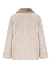 raglan-sleeve wool jacket Highlights - Beige - Wool - Faux-fur collar - Front flap pockets - Press-stud fastening Made in Italy Composition Wool 100% Washing instructions Read Manufacturer Guidelines