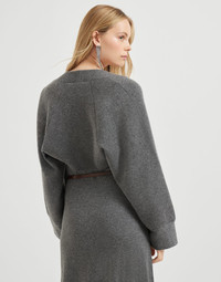 A cozy look and an elegant feel characterize this pure cashmere double knit shrug. The refined craftsmanship involves joining two layers of yarn, providing a compact texture that is soft and warm against the skin. The relaxed, comfortable silhouette makes the shrug a versatile piece to complete the season's looks with ease and sophistication. MATERIALS Manufacturing of the precious pure cashmere combines two soft knit layers to enhance the precious qualities of the natural fiber. Ultra soft and cozy, the garment maintains a balanced weight to offer the right amount of protection. DETAILS Wide sleeve Plain stitch 96% CASHMERE, 3% NYLON, 1% ELASTANE
