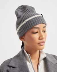 Cashmere English rib knit beanie with monili