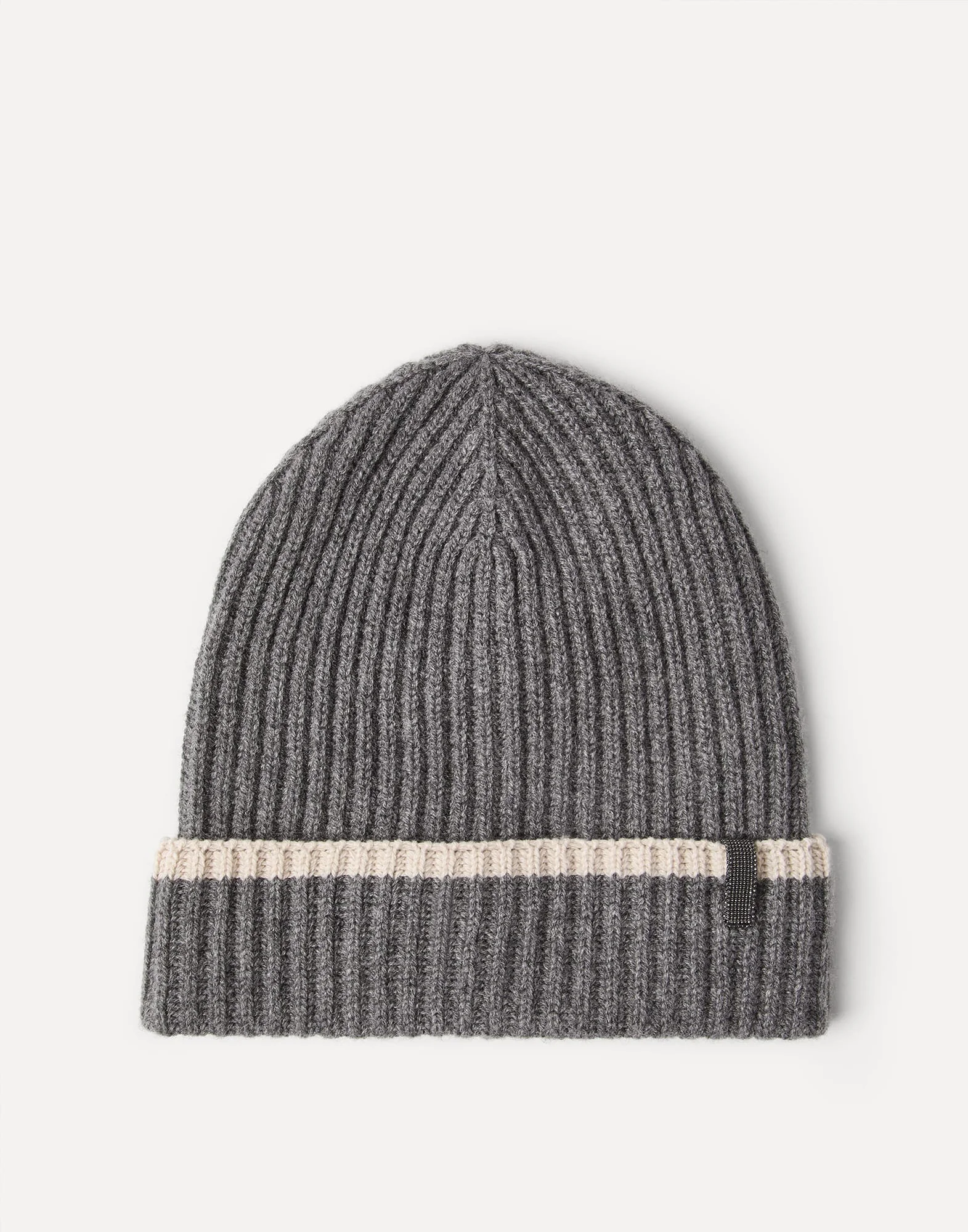Noble Brunello Cucinelli fibers enrich this new cashmere knit beanie. Timeless English rib knitting enhances the soft yarn and emphasizes the accessory’s exquisitely wintry feel. The shiny monili detail adds a feminine sparkle. MATERIALS The noble cashmere fiber is characterized by an extreme fineness and also for its precious insulating qualities which guarantee warmth, providing coverage and lightness when worn. DETAILS Rib knit Nickel-free monili decoration 100% CASHMERE