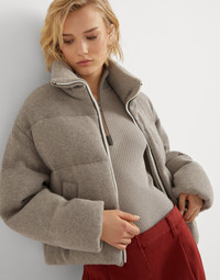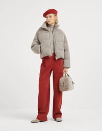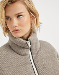 The excellence of knitwear crosses into the world of outerwear, combining the unmistakable soft touch of yarns with the protection of a down jacket. Iconic cashmere English rib knitting, constructed like a fabric, covers the garment’s rounded silhouette, while the cased elastic cuffs and the drawstring hem introduce practical, sporty details. A precious embroidery made of fine rows of shiny monili along the zipper closure adds a delicate, feminine sparkle. MATERIALS Refined workmanship gives new life to the precious pure cashmere yarn. Created on a loom as if it were an ultra lightweight fabric, the yarn is crafted with sophisticated techniques to recreate the effect of a thin, very soft and smooth material. High-quality goose down and feather fill completes this piece. All of the padding used comes exclusively from European suppliers who are members of the EDFA (European Down and Feather Association), guaranteeing animal and environmental welfare. DETAILS Two-way zip closure Lined Stand-up collar Hand pockets Drawstring hem Rib knit Padding made from high-quality natural materials: 90% goose down, 10% goose feathers Nickel-free monili decoration 100% CASHMERE