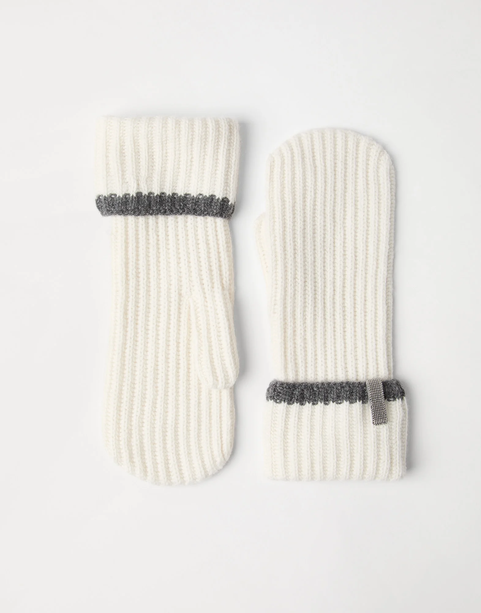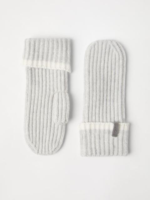 Cashmere English rib knit mittens with monili
