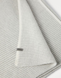 Cashmere, the iconic material of the Brunello Cucinelli collections, enhances the essential style of this knit scarf with its unmistakable sophistication. Timeless English rib knitting provides a comfortable sensation of softness and warmth, ideal for facing the winter. The shiny monili detail adds a feminine sparkle. MATERIALS The noble cashmere fiber is characterized by an extreme fineness and also for its precious insulating qualities which guarantee warmth, providing coverage and lightness when worn. DETAILS Scarf measures approx. 70 cm (27,56") x 235 cm (92,52") Rib knit Nickel-free monili decoration 100% CASHMERE