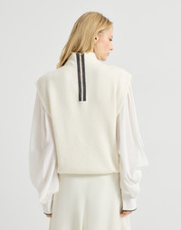 Cashmere English rib knit sleeveless turtleneck sweater with precious zipper