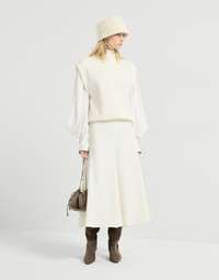 Soft and warm, this pure cashmere turtleneck sweater showcases a comfortable design enriched with feminine details. The garment’s cozy look is paired with the timeless English rib knitting that enhances the design’s relaxed lines. A delicate embroidery of fine rows of shiny monili illuminates the zipper pull on the back with a precious note in true Brunello Cucinelli style. MATERIALS The noble cashmere fiber is characterized by an extreme fineness and also for its precious insulating qualities which guarantee warmth, providing coverage and lightness when worn. DETAILS Zip opening at back of neck Regular shoulder Flat pressed hem English rib 100% CASHMERE