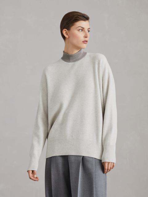 The timeless style of English rib knitting defines this pure cashmere sweater. The yarn’s lightweight texture perfectly complements the regular volume of the garment’s relaxed fit. The embroidery of fine rows of monili enriches the cuffs with a delicate sparkling effect. MATERIALS The noble cashmere fiber is characterized by an extreme fineness and also for its precious insulating qualities which guarantee warmth, providing coverage and lightness when worn. DETAILS Funnel neck Drop shoulder Wide sleeve English rib Nickel-free monili decoration 100% CASHMERE