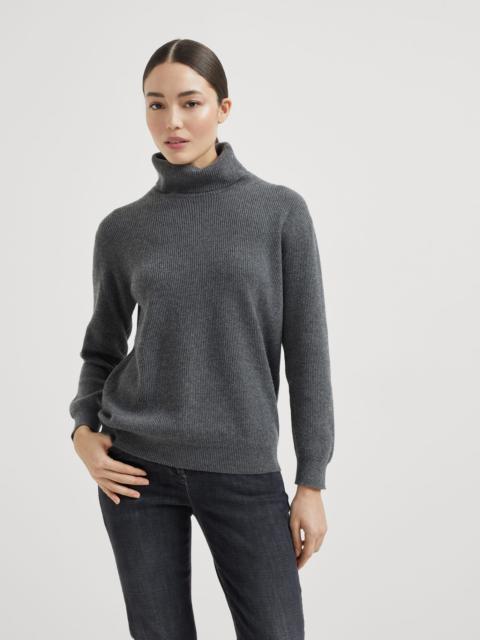Cashmere English rib turtleneck sweater with monili