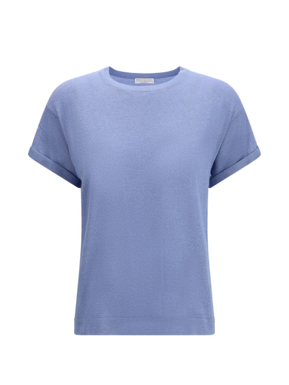 rolled-sleeve T-shirt Highlights - Blue - Round neck - Rolled sleeves - Short sleeves Made in Italy Composition Cashmere 51%, Silk 22%, Nylon 20%, Polyester 7% Washing instructions Read Manufacturer Guidelines