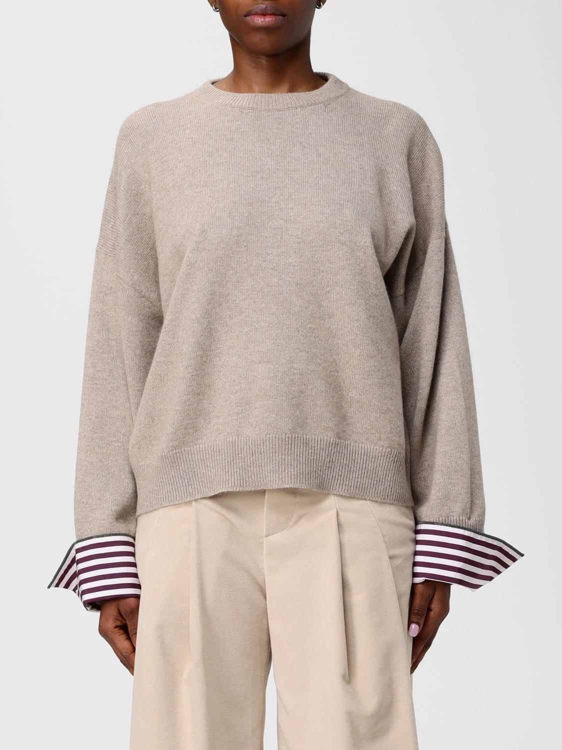 DESCRIPTION - Style: Casual, Sporty - Model: Crewneck - Neckline: Crewneck - Shoulders: Regular - Sleeves: Long - Cuffs: Striped - Bottom: With ribbed edges, With straight hemline - Materials: Cashmere - Pattern: Plain-colored DETAILS AND CARE Composition GENERAL KASHMIR/CAPRA HIRCUS 100 - SIZE AND FIT Sizes not available Size and fit Regular fit Designer code: M12709800P C077 Giglio Code: H17288 Designer: Brunello Cucinelli Collection: Brunello Cucinelli Woman Category: Clothing Brunello Cucinelli