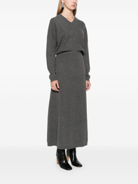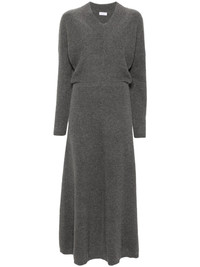 ribbed-knit maxi dress Highlights - Medium grey - Cashmere - Ribbed knit - Melange effect - V-neck - Drop shoulder - Long sleeves - Maxi skirt - Ribbed hem - Unlined Made in Italy Composition Cashmere 100% SIZE & FIT Model measurements Height 5 ft 9 in(1.75 m) Bust/Chest 31.88 in(81 cm) Hips 34.64 in(88 cm) Waist 24.01 in(61 cm) FittingInformation Designed for a loose fit at the chest with a close fit over the waist and hips The elasticated waist allows for a comfortable fit Made with a midweight knit, this piece offers some stretch This piece fits true to size – take your usual size