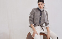 British inspiration and luminous details define the style of this new mohair, virgin wool and cashmere cardigan. Fine rows of shimmering sequins highlight the large check pattern reminiscent of timeless Prince of Wales, reinterpreted in a contemporary, feminine way. Completed by a classic crew-neck and contrasting button closure, the garment features a very comfortable, essential and straight silhouette. MATERIALS The mohair, virgin wool and cashmere yarn combines the properties of the natural fibers to create a light, cozy texture with a slightly airy effect. DETAILS Metal button closure Crew-neck Regular shoulder Regular sleeve Decorative faux pocket with button 28% MOHAIR, 26% VIRGIN WOOL, 20% NYLON, 13% CASHMERE, 8% WOOL, 5% SILK