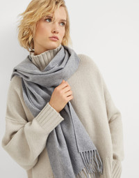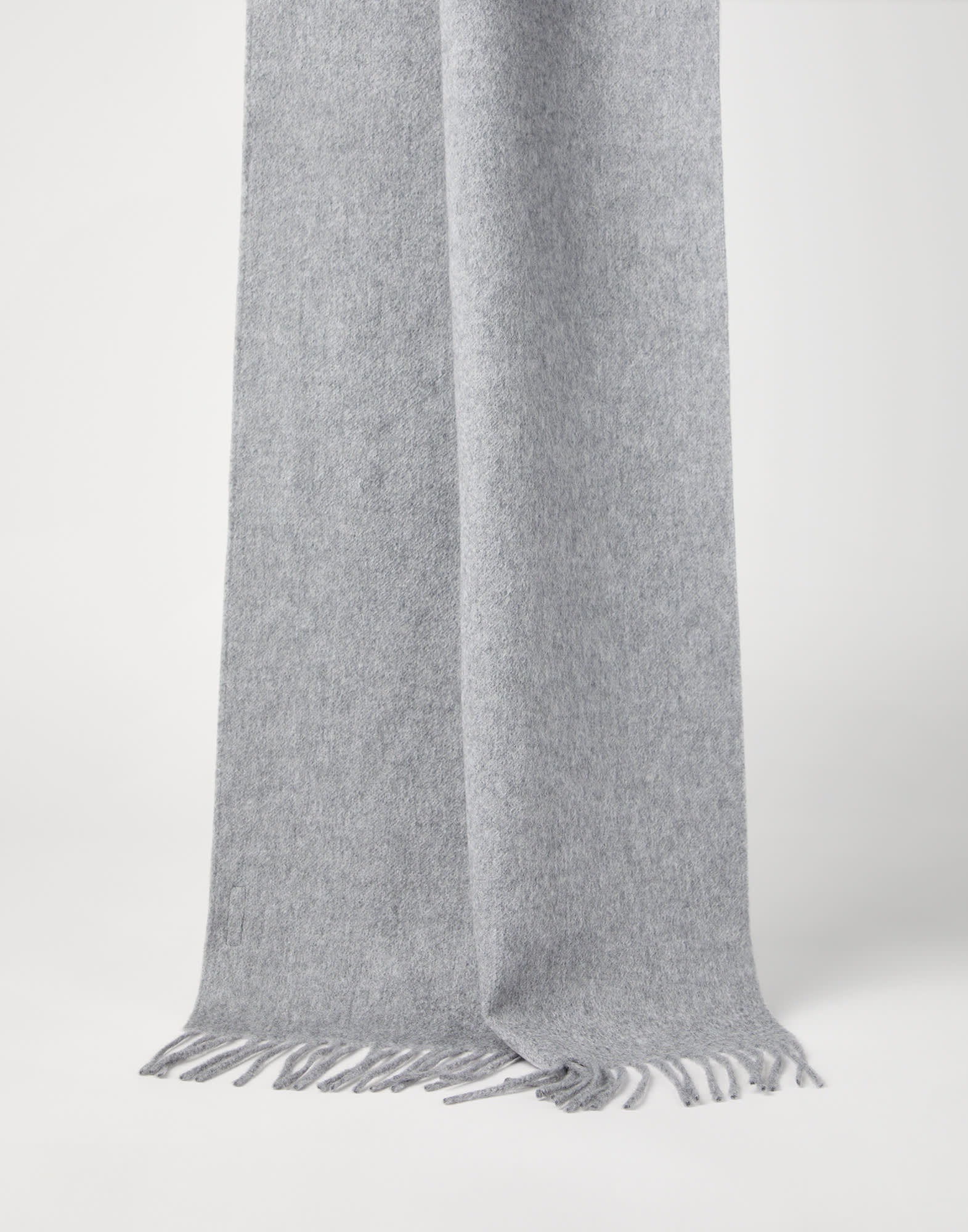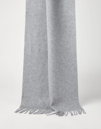 The unmistakable double knit from the Brunello Cucinelli collections enhances the essential style of this scarf with its finesse. The noble yarn’s ultra-soft, compact texture enriches the season's colors, giving the accessory an understated elegance. MATERIALS Two thin layers of cashmere fabric are crafted together through a complex manual process combined with machine work. Ultra-soft and cozy, the accessory maintains a balanced weight to offer the right amount of protection. DETAILS Short side with fringe Special workmanship Scarf measures approx. 40 cm (15,75") x 200 cm (78,74") 100% CASHMERE