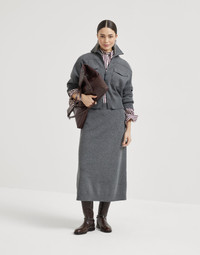 The unmistakable double knit of the Brunello Cucinelli collections enhances the essential style of this midi skirt with its refinement. The noble yarn’s ultra-soft, compact texture enriches the season's colors, giving the design an understated elegance. The midi length highlights the skirt’s feminine essence, while the pull-on fit makes wearing comfortable. MATERIALS Manufacturing of the refined pure cashmere combines two layers of soft knit to enhance the precious qualities of the natural fiber. Ultra soft and warm, the garment maintains a balanced weight to offer the right amount of protection. DETAILS Pull-up skirt Special workmanship 96% CASHMERE, 3% NYLON, 1% ELASTANE
