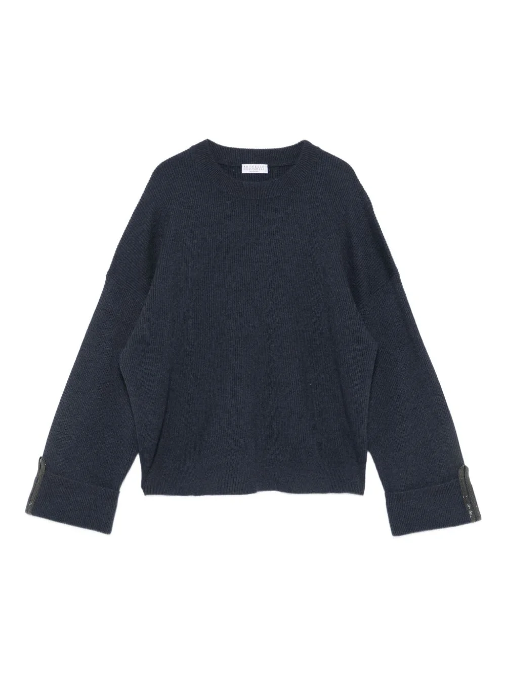 cuff-detail sweater Highlights - Dark blue - Ribbed knit - Cuff detail - Round neck - Long sleeves Made in Italy Composition Cashmere 100% SIZE & FIT Model measurements Height 5 ft 11 in(1.8 m) Bust/Chest 31.49 in(80 cm) Hips 36.61 in(93 cm) Waist 24.4 in(62 cm) Washing instructions Read Manufacturer Guidelines