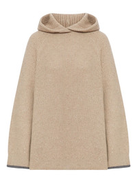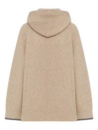 sequin-embellished hooded cashmere sweater Highlights - Beige - Cashmere - Ribbed knit - Hooded neckline - Sequin embellishments - Grey cuffs Made in Italy Composition Cashmere 100% Washing instructions Read Manufacturer Guidelines