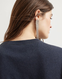A minimalist aesthetic, the excellence of cashmere and fine details define the concept of the new cashmere top. The essential appearance of this garment is enriched by rib knit edges and by precious monili embroidery on the back collar, which complements the design with a feminine and sparkling detail, in pure Brunello Cucinelli style. MATERIALS The noble cashmere fiber is characterized by an extreme fineness and also for its precious insulating qualities which guarantee warmth, providing coverage and lightness when worn. DETAILS Crew-neck Plain stitch Nickel-free monili decoration 100% CASHMERE