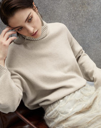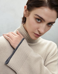 Cashmere turtleneck sweater with shiny contrast cuffs