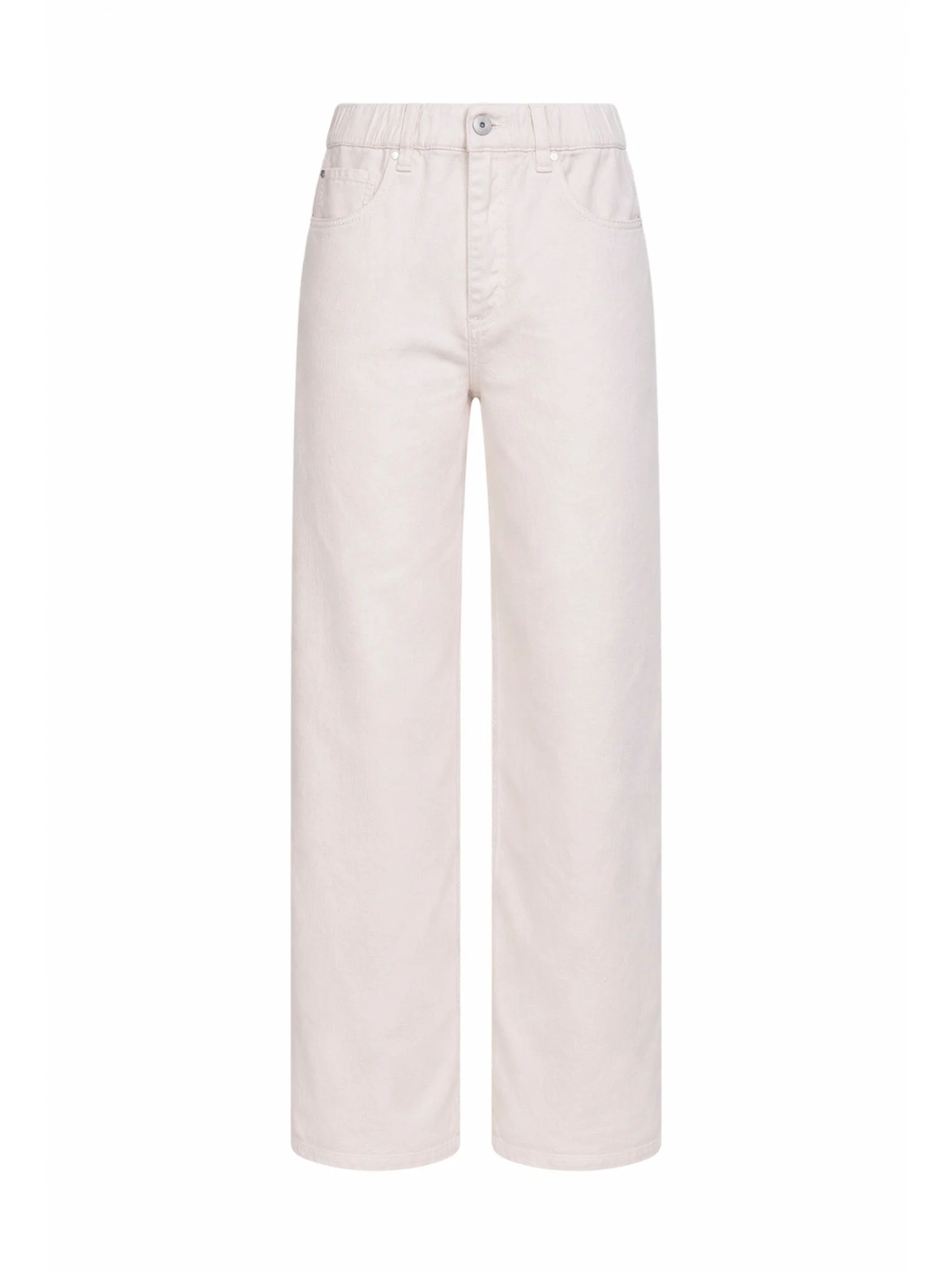 - Front zip-fly closure, metal logo button - Elasticated waistband with belt loops; nickel-free monili embroidery at back loop - Five-pocket model - Wide straight leg - Relaxed fit - Chalk color - 60% cotton, 40% linen - Made in italy Natural (Veg): Cotton60 % Natural (Veg): Linen/Flax40 % Made in: ITALIA Season: P26 ML996P4053-C8739