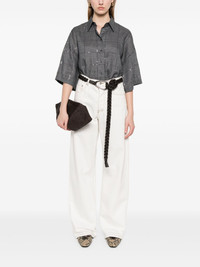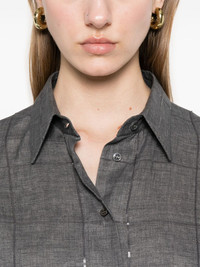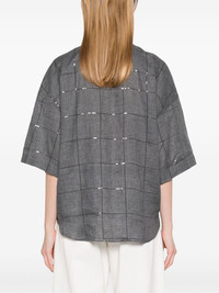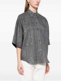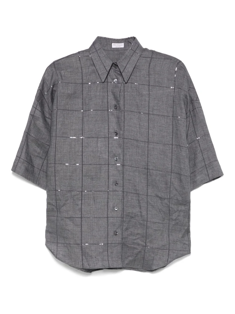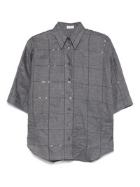 checked shirt Highlights - Anthracite grey - Front button fastening - Sequin detailing - Straight-point collar - Short sleeves Made in Italy Composition Linen/Flax 100%, Polyester 100% SIZE & FIT Model measurements Height 5 ft 9 in(1.75 m) Bust/Chest 31.88 in(81 cm) Hips 34.64 in(88 cm) Waist 24.01 in(61 cm) FittingInformation Designed to be unstructured, offering a loose fit throughout Made from a midweight non-stretch fabric