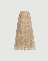 Silk chevron print organza paneled circle skirt