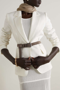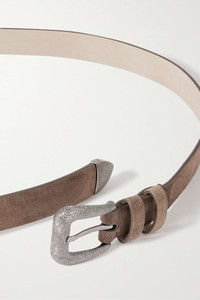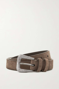 EDITORS'NOTES Brunello Cucinelli's belt is an easy way to add some Western flair to your favorite jeans and pants. It's been made in Italy from soft suede and has a silver-tone buckle that's etched to resemble classic topstitching. SIZE & FIT - Designed to be worn on the hips or waist - Measurements can be found in the link below DETAILS & CARE - Light-brown suede (Calf) - Buckle fastening