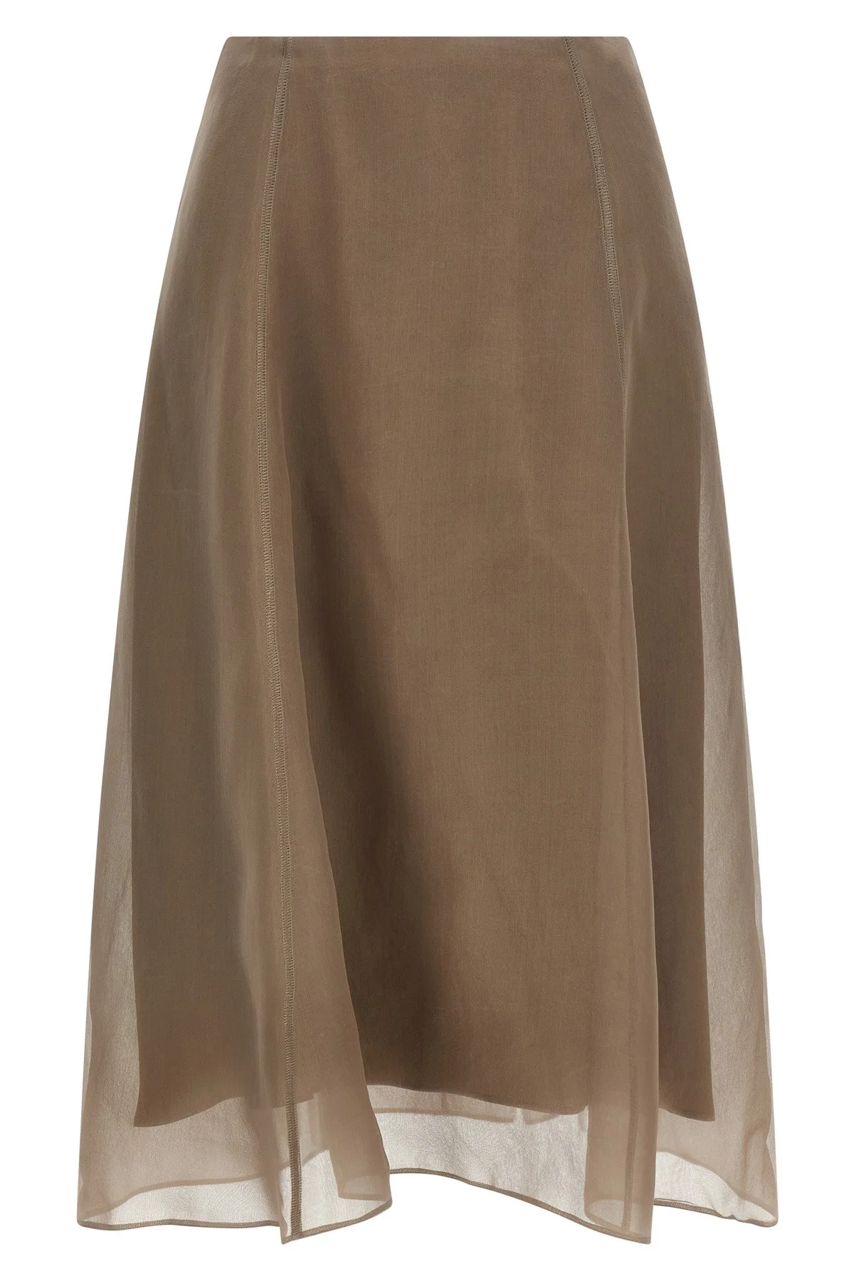 cod. MF940G3877C8909 'Circle' Crispy silk midi skirt, crepe and silk blend lining, flared silhouette, back zip closure. Color: Beige Size & Fit: true to size fit Composition: 100% silk Made in: Italy