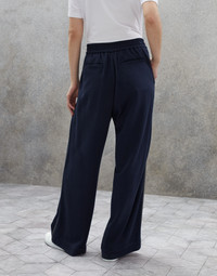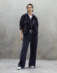 Refined Brunello Cucinelli materials are paired with the casual style of the Travelwear line, dedicated to moments of relaxation and free time. These new comfort cotton and silk interlock Wide trousers combine natural materials with very feminine details. An embroidery made of fine rows of shiny monili creates a precious side band that gives the garment a radiant sparkle. At the same time, the elasticized drawstring waistband and the oversized cut make the trousers particularly comfortable to wear. MATERIALS The cotton and silk interlock fabric is characterized by a compact, smooth and even surface, balanced between informality and refinement. A very small amount of synthetic fiber provides added comfort. DETAILS Elastic waistband closure with external drawstring Front pockets Back welt pockets Nickel-free monili decoration 67% COTTON, 31% SILK, 2% NYLON