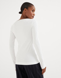 The iconic embellishment of the Brunello Cucinelli collections enriches the minimal style of this ribbed comfort cotton T-shirt. The V-neck is illuminated with a precious trail of fine rows of shiny monili, adding a sparkling touch to the garment. The fitted lines make the silhouette very comfortable. MATERIALS Cotton jersey features a lightweight, smooth and fluid hand. A small percentage of spandex provides added comfort. DETAILS Wide neckline Nickel-free monili decoration 95% COTTON, 5% ELASTANE