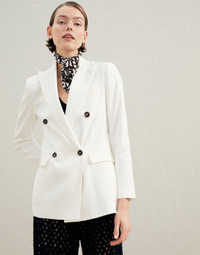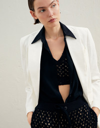 Sartorial foundations and a feminine twist: lightweight summery fabrics, distinguished craftsmanship and informal elements come together to create outfits with ease. Designed to be worn with everything and at any time of the day, blazers in a wide variety of styles and volumes are a key element in expressing new concepts of female elegance. MATERIALS Linen and cotton drill combines natural fibers to create a fresh and pleasantly crisp texture. The season's colors are slightly softened by the naturally slubbed linen. A fabric half-lining completes the garment. DETAILS Designed in Solomeo and handcrafted in Italy 65% LINEN, 34% COTTON, 1% ELASTANE