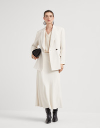 A refined, essential aesthetic defines the style of this Flute skirt in comfort viscose couture twill. The garment’s smooth, fluid texture highlights the tapered, feminine silhouette. The design continues with volume at the bottom for a slightly flared effect. MATERIALS Comfort viscose couture twill is an elegant, fluid fabric made with a small percentage of synthetic fiber to provide added comfort. DETAILS Pull-up skirt Silk-blend crêpe lining 98% VISCOSE, 2% ELASTANE