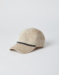 An elegant attitude meets Brunello Cucinelli’s refined materials and distinct details in this new corduroy Baseball cap. The fabric’s special texture highlights the season’s color and is combined with a shiny monili insert, illuminating the base with a sophisticated, feminine touch. The lining helps to make the hat comfortable to wear. MATERIALS The textured corduroy is characterized by a very fine, feminine wale, to which the “hammered” finish gives a slightly irregular sheen, accentuating the fluidity of the viscose and giving the season’s colors depth. DETAILS Reinforced brim Adjustable strap with buckle Lined Nickel-free monili decoration 100% VISCOSE