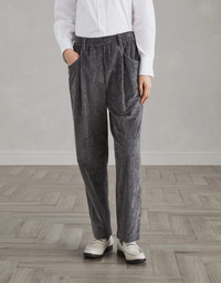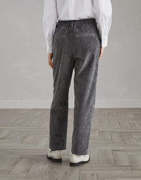 These new corduroy Baggy trousers represent a harmonious mix of tailored details and casual styling. The front pleats give the garment a clean, essential silhouette for an impeccable yet relaxed fit. MATERIALS Comfort cotton corduroy is characterized by a soft, velvety three-dimensional texture. The noble qualities of the natural fiber, such as softness and breathability, are paired with a small percentage of synthetic fibers to preserve the fabric’s structure. DETAILS Pull-up trousers Front pockets Back pockets Pleat Unlined 99% COTTON, 1% ELASTANE