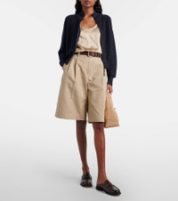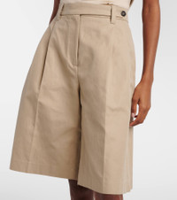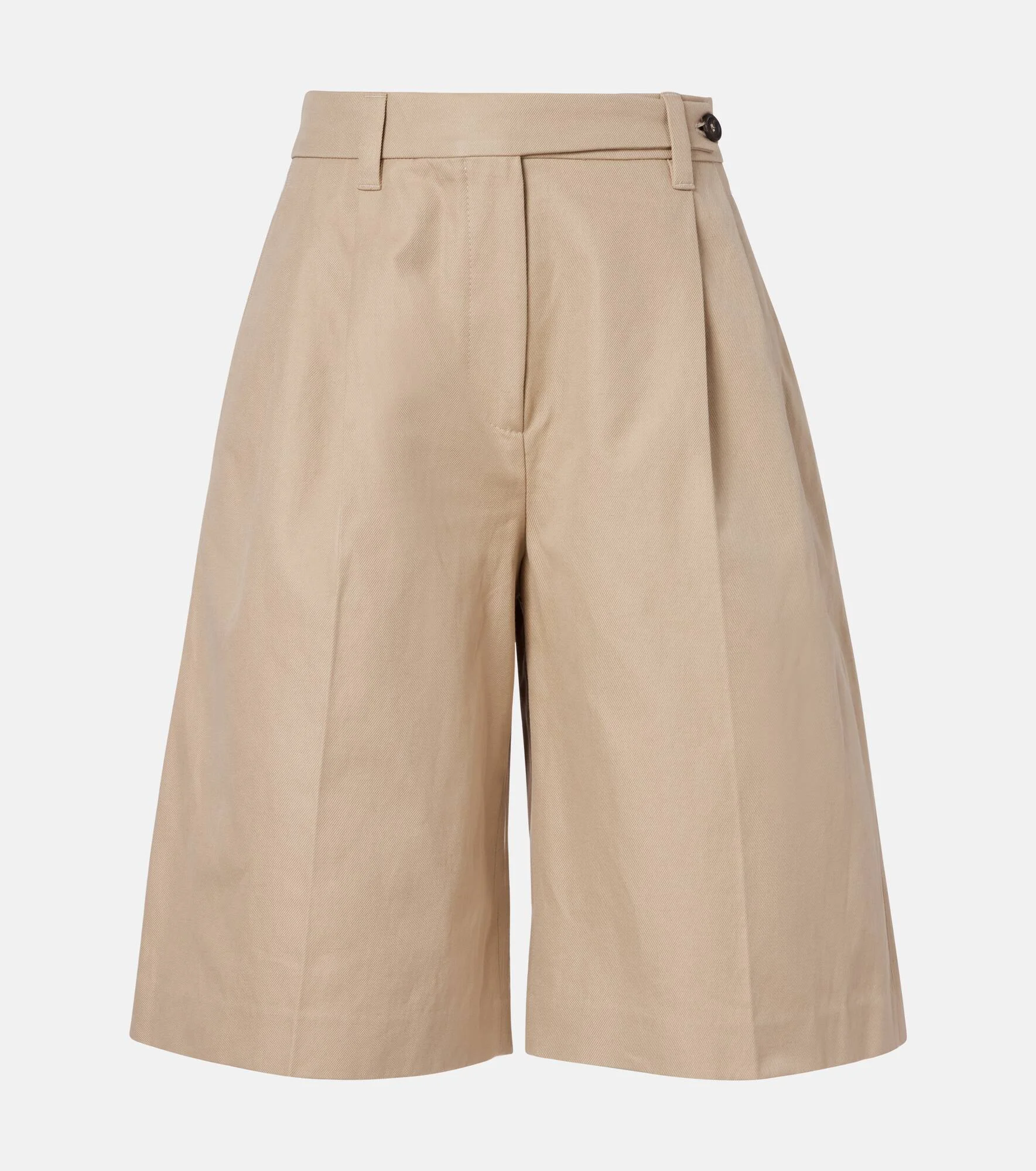Brunello Cucinelli's designs are created in Solomeo, a medieval hamlet whose art and traditions are woven into the house's every fiber. Made from breathable cotton and linen, these shorts have a classic zip-and-button fastening. Product Details - Material: 76% cotton, 24% linen - Care instructions: dry clean - Made in Italy - Color: beige - Designer color name: Sandshell - Item color: beige - Lining: 65% acetate, 35% polyester - Other inner trims: 100% cotton - Contains non-textile parts of animal origin - Details: 100% brass - Closure: zip and button fastening - Pockets: slant pockets, back pockets - Belt loops - Item number: P01143626 Size & Fit - True to size - Non-stretchy fabric - Wide-leg - Sits low on the hips - The model seen in the picture is 178cm-5'10" and wearing a size IT 40