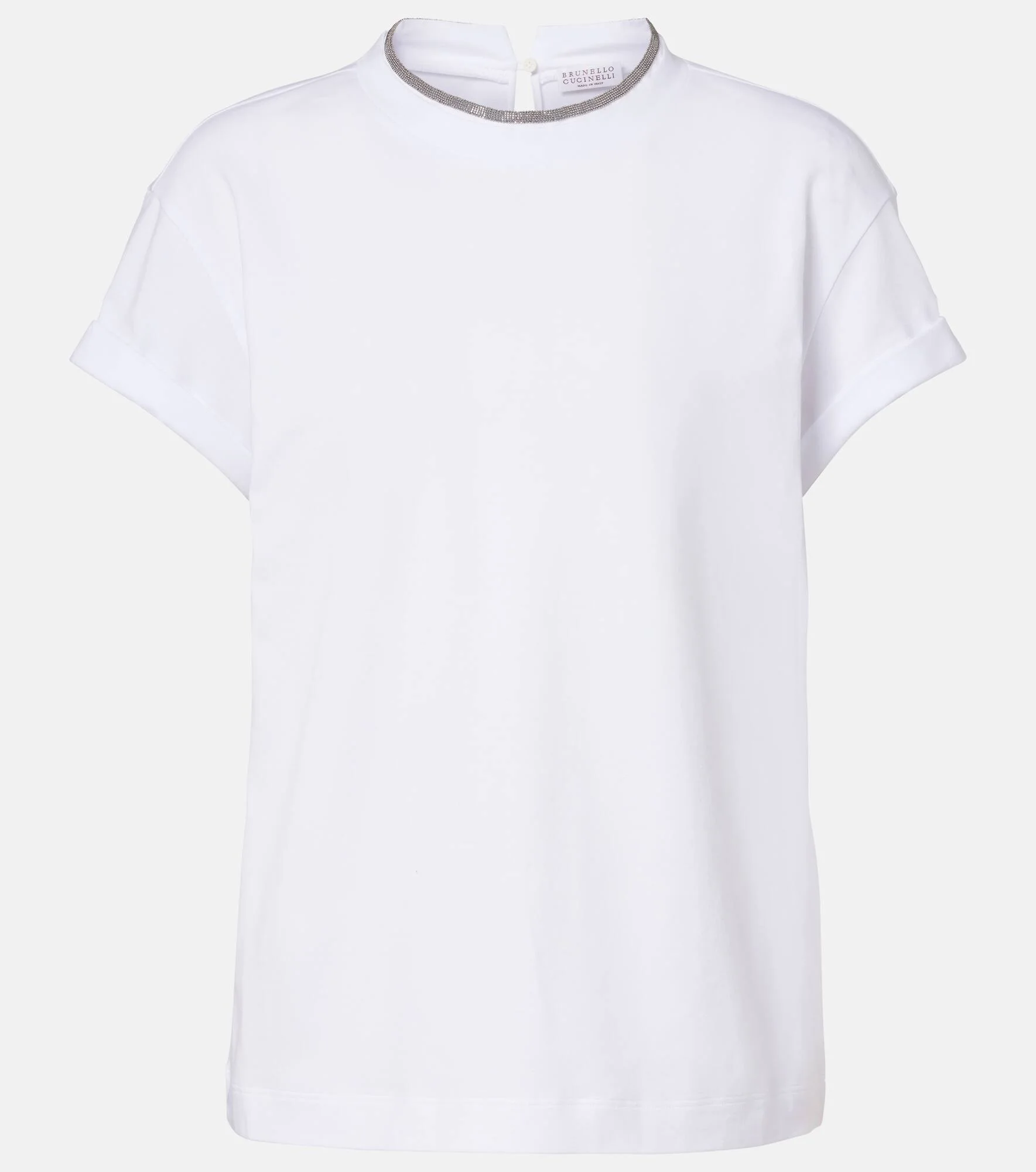 Brunello Cucinelli's designs are created in Solomeo, a medieval hamlet whose art and traditions are woven into the house's every fiber. This top is crafted from a soft cotton blend. Product Details - Material: 93% cotton, 7% elastane - Care instructions: machine wash at 30 degrees - Made in Italy - Color: white - Designer color name: White - Item number: P01143656 Size & Fit - True to size - Straight fit - Stretchy fabric - Falls to the hip - The model seen in the picture is 178cm-5'10" and wearing a size XS