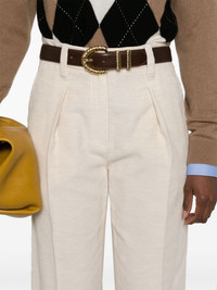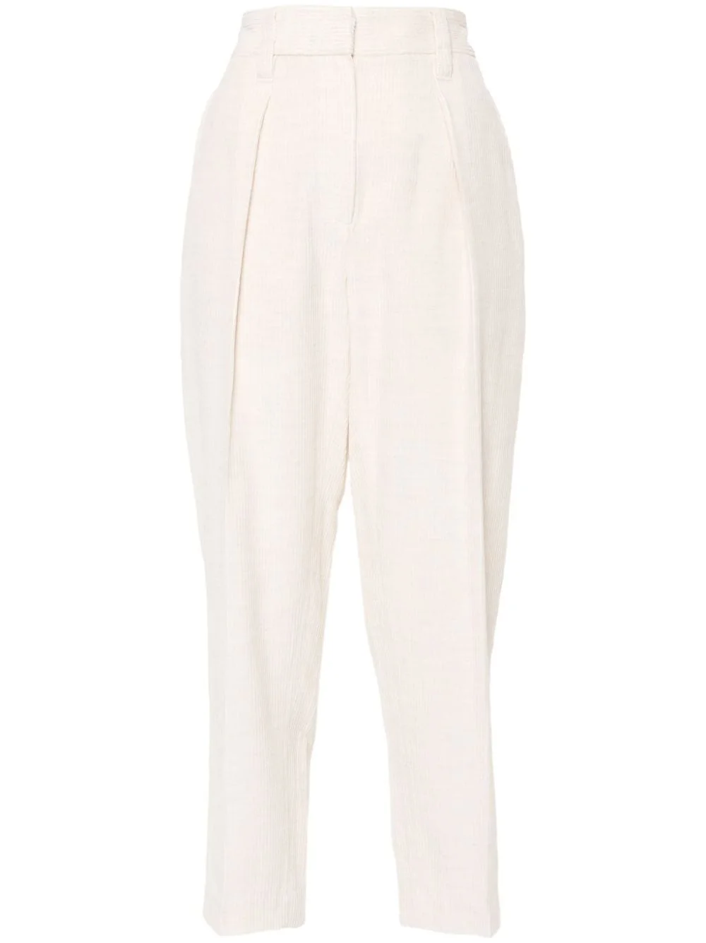pressed-crease corduroy trousers Highlights - Beige - Corduroy - Belt loops - Two side inset pockets - Pressed crease - Pleat detailing - Two rear welt pockets - Unlined - Concealed fly and button fastening Made in Italy Composition Outer: Viscose 55%, Cotton 45% Lining: Acetate 65%, Polyester 35% SIZE & FIT Model measurements Height 5 ft 11 in(1.8 m) Bust/Chest 31.49 in(80 cm) Hips 36.61 in(93 cm) Waist 24.4 in(62 cm) FittingInformation Designed for a straight-leg fit, these trousers allow for a close fit at the waist and an unrestricted, comfortable fit over the leg Made from a lightweight non-stretch fabric This piece fits true to size – take your usual size