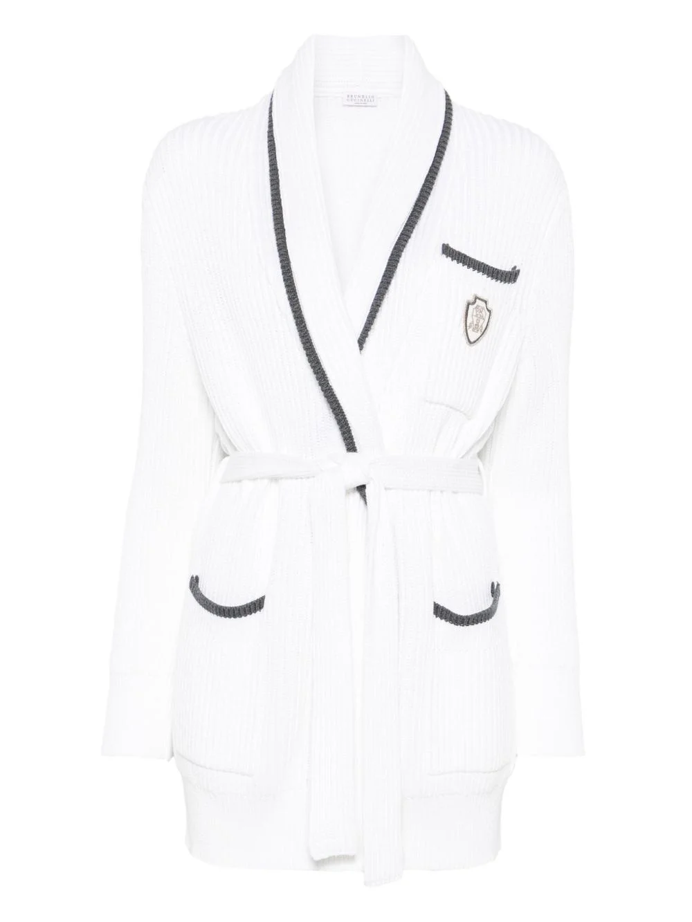 logo-patch cardigan Highlights - White - Chest patch pocket - Two side patch pockets - Belted waist - Contrasting trim Made in Italy Composition Cotton 100% SIZE & FIT Model measurements Height 5 ft 9 in(1.75 m) Bust/Chest 32.67 in(83 cm) Hips 36.22 in(92 cm) Waist 24.8 in(63 cm) FittingInformation Designed for a relaxed fit, this piece allows for comfort and movement when worn The tie fastening gives an adaptable and personalised fit Made with a midweight knit, this piece offers some stretch