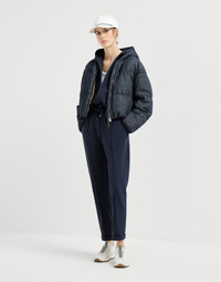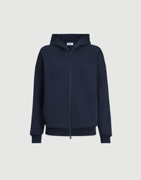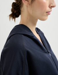 Refined Brunello Cucinelli materials are paired with the casual style of the Travelwear line, dedicated to moments of relaxation and leisure. The Active inspiration of this lightweight stretch cotton French terry hooded sweatshirt is enriched with a precious detail: the zipper is illuminated by fine shiny trails of monili embroideries that run along the garment for a distinctly feminine touch. MATERIALS The stretch characteristic of the lightweight cotton French terry makes the garment comfortable to wear. DETAILS Two-way zip closure Hood Drop shoulder Wide sleeve Hand pockets Nickel-free monili decoration 98% COTTON, 2% ELASTANE
